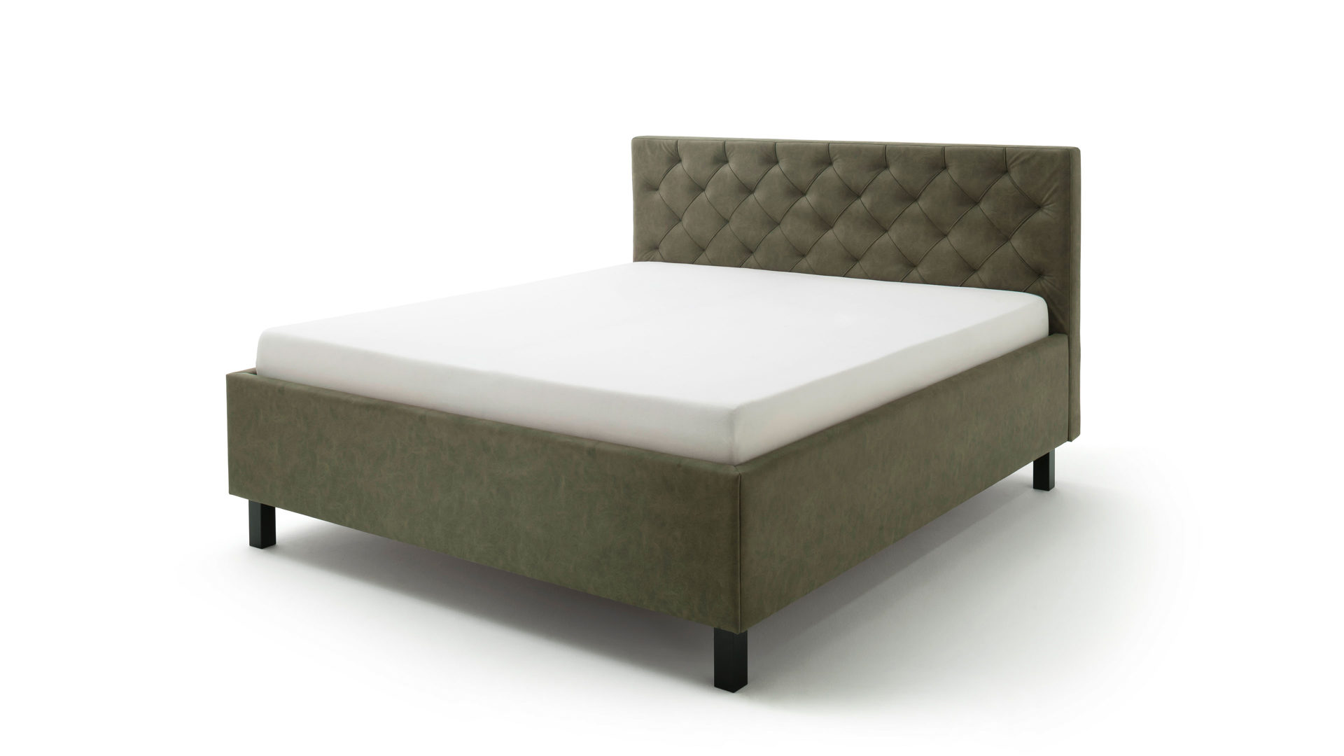 Das Polsterbettgestell San Remo bringt einen zeitlosen Chic mit. Sein grüner Mikrofaserbezug Bulus 17 trifft auf ...