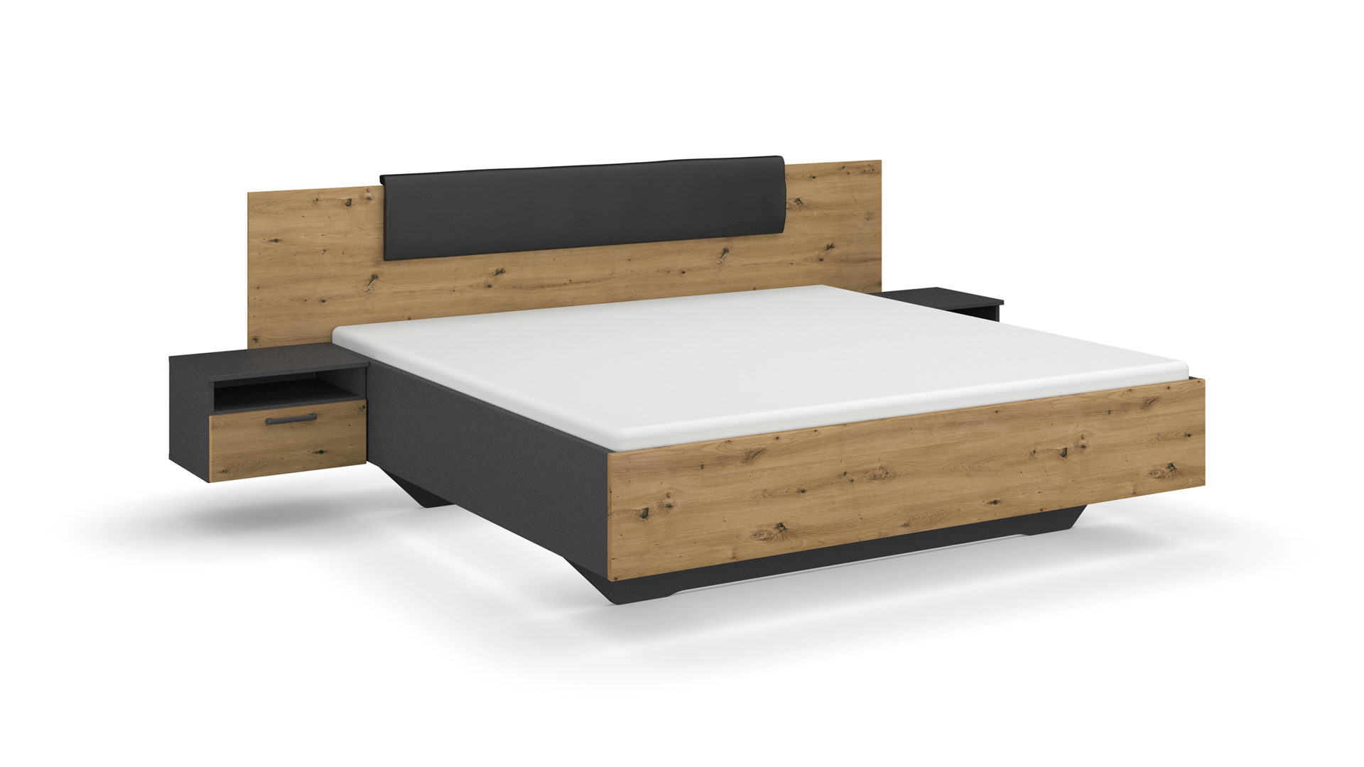 Grau-Metallic & Eiche Artisan - Liegefläche ca. 180 x 200 cm