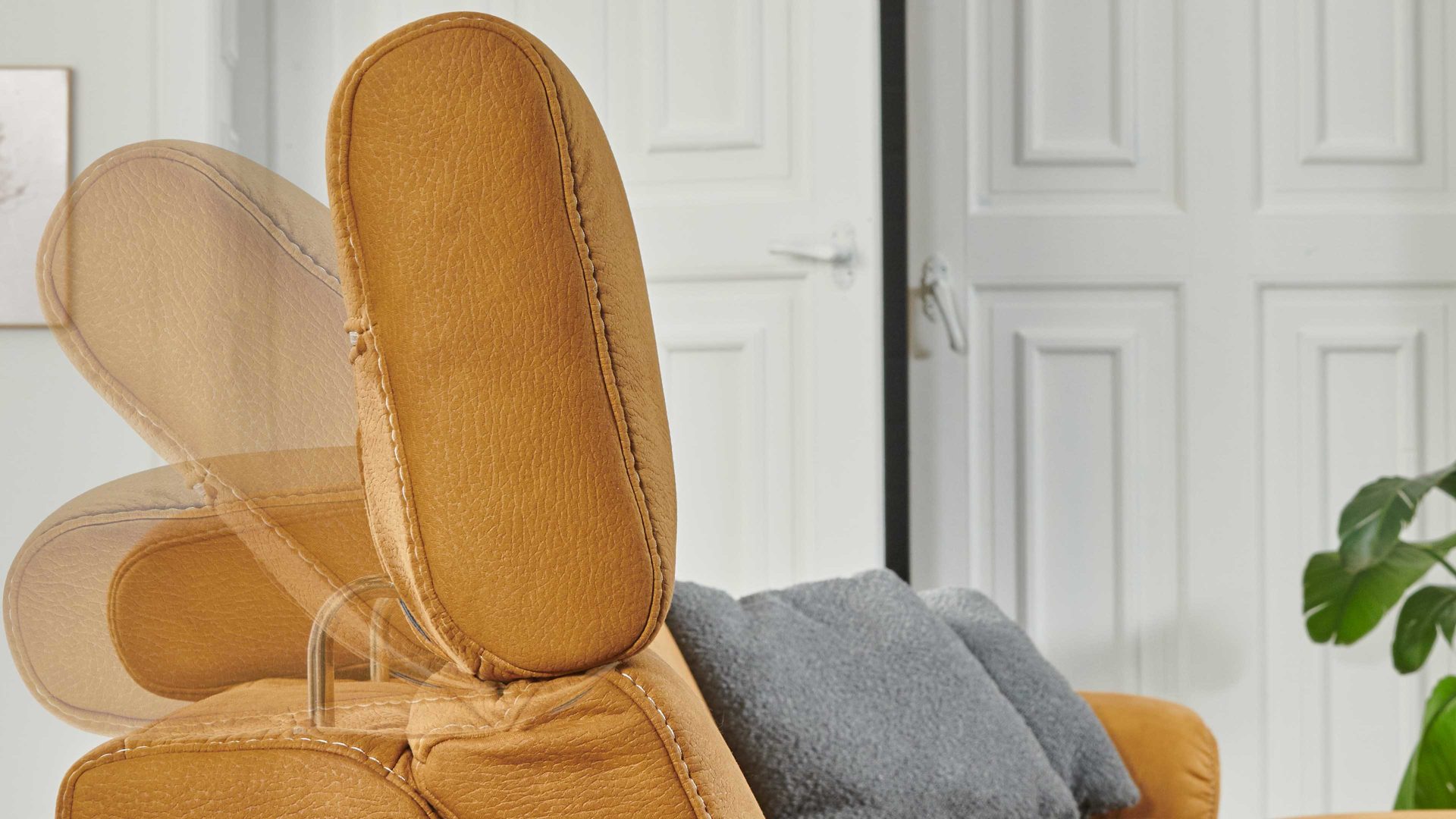 Diese Kopfteilverstellung ist eine praktische Mehrpreis-Funktion für alle Elemente mit Kopfpolster aus dem Polsterprogramm Relaxa 6.0 Plus PSG XC.