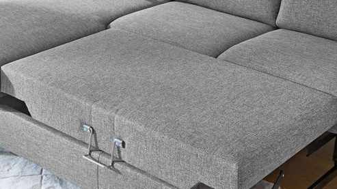Die Funktions-Armlehne lässt sich mehrfach mittels Rasterbeschlag bis hin zur Liegeposition verstellen - im Handumdrehen ist das Polstermöbel bereit für eine kleine Auszeit.