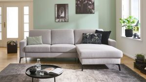 mit Federkern-, Tonnentaschenfederkern- oder softer Kaltschaumpolsterung und mit verschiedenen Armlehn- und Fußvarianten lieferbar
