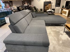 Der anthrazitfarbene Stoffbezug mit markanter Doppelnaht verleiht dem Sofa nicht nur eine elegante Optik, sondern überzeugt auch durch seine Alltagstauglichkeit. Die pflegefreundliche Oberfläche lässt sich leicht reinigen – ideal für Familien und Vielnutzer. Zudem steht Ihnen eine große Auswahl an Stoff- und Lederkollektionen zur Verfügung, um Ihre Wunschkombination farblich und haptisch individuell abzustimmen.