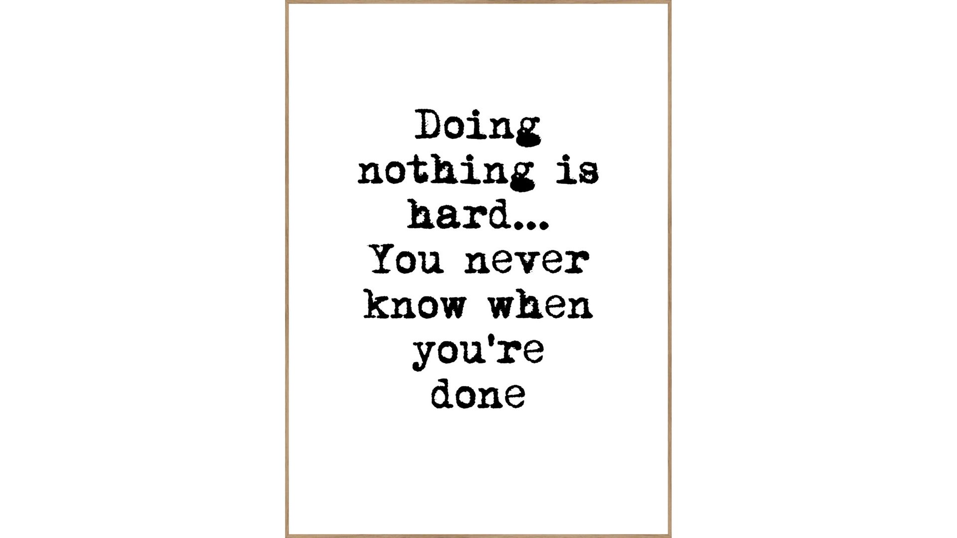 Posterdruck Doing Nothing | bedruckte Holzplatte | schmaler Eichenholzrahmen | Maße ca. 50 x 70 cm | Rückseite mit Aufhängung