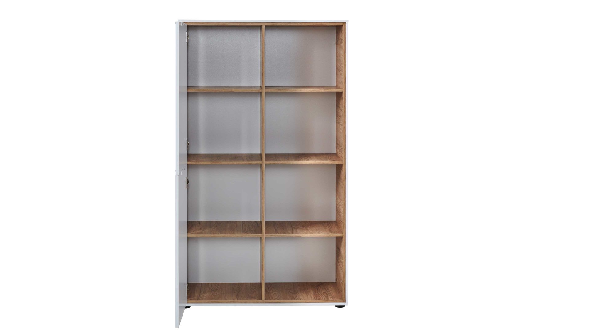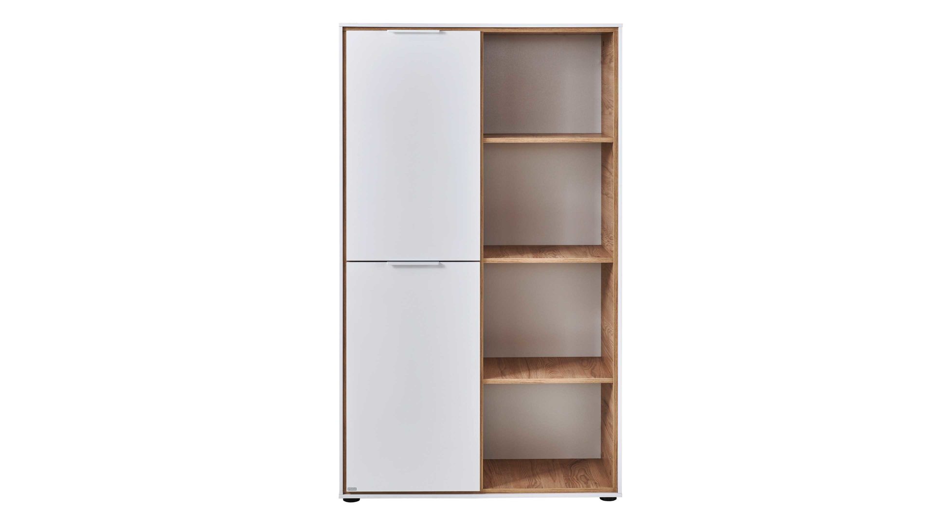 Das Regal verfügt über zwei Türen, hinter denen sich insgesamt vier Fächer befinden. Hier können Sie alle wichtigen Dinge Ihres Kindes verstauen und haben sie immer griffbereit. Zusätzlich bietet das Standregal vier offene Fächer, die sich perfekt für Bücher, Spielzeug oder Dekoration eignen.
