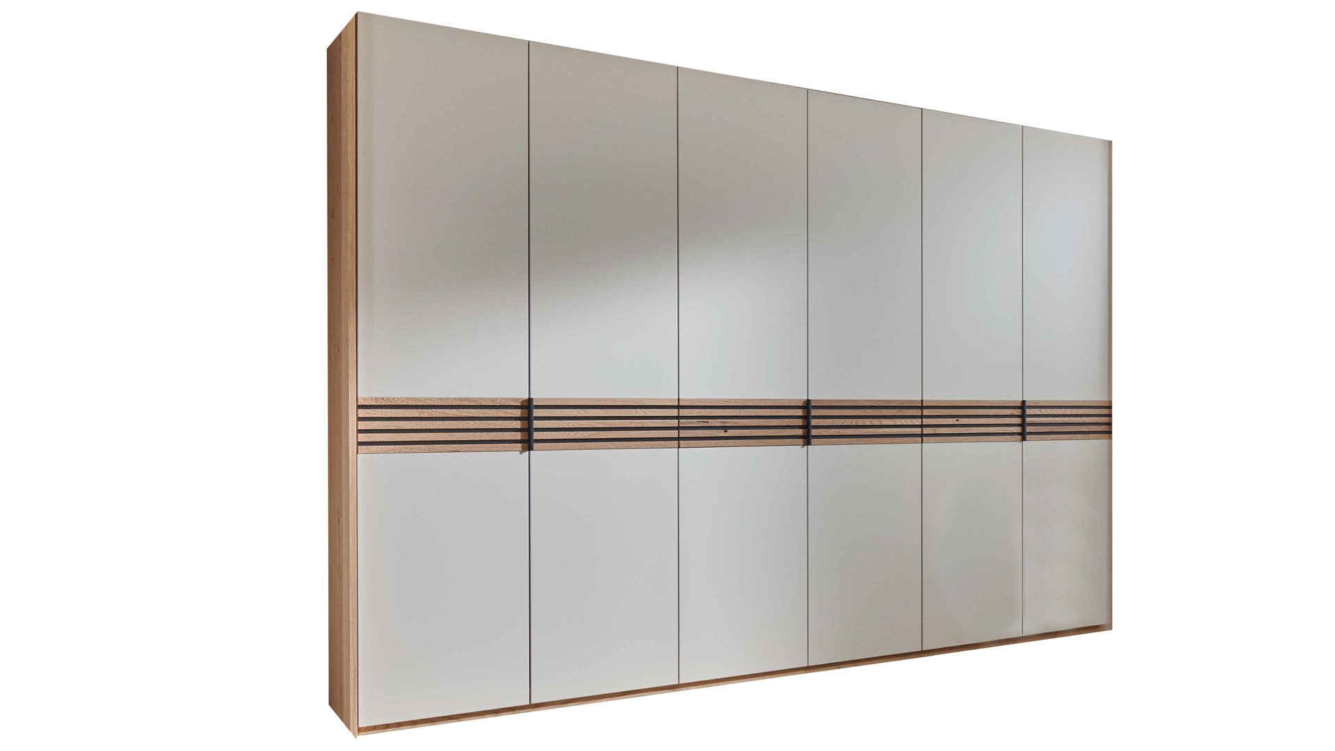Die C. DISSELKAMP Schlafzimmerserie Cabrillo bietet Ihnen eine elegante und moderne Lösung für Ihr Schlafzimmer. Die sandfarbenen Lackfronten in Kombination mit dem Echtholz Balkeneiche verleihen dem Zimmer einen edlen und natürlichen Look. Die anthrazitfarbenen Metallgriffe setzen dabei stilvolle Akzente.