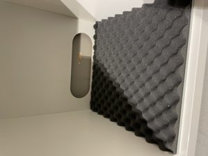 1 Holztür m. Akustikblende + akustikwirksamer Innenaustattung