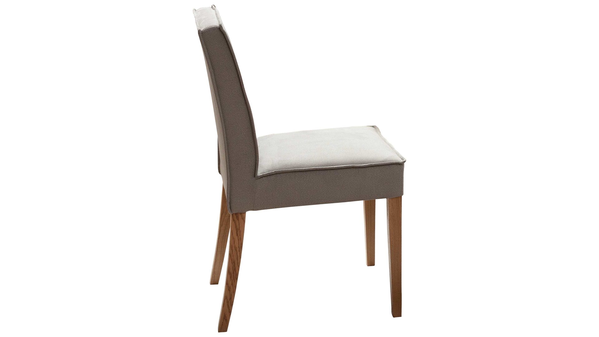 Der Polsterstuhl Lagos begeistert mit den hochwertigen Materialien, der erstklassigen Verarbeitungsqualität, dem stilvollen Design und dem hohen Komfort. Als stabile Basis fungiert ein lackiertes Eichenholzgestell, das natürlichen, warmen Charme verströmt und hervorragend mit dem hellgrauen Stoffbezug harmoniert. In Kombination sorgen die Materialien und Farben für eine moderne und gemütliche Ausstrahlung. Einen gelungenen Akzent setzt die umlaufende Ledernaht.