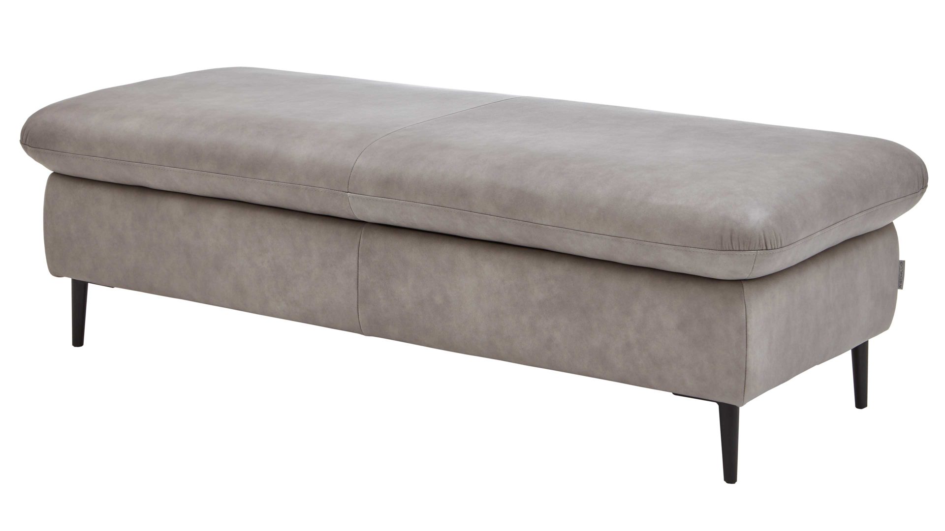 Der Funktionshocker aus der W.SCHILLIG Polsterserie Select Venus plus kombiniert einen edlen hellgrauen Lederbezug mit mattschwarz ...