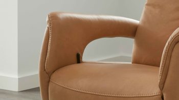 Mit dem honigfarben pigmentierten Glattlederbezug samt Ton-in-Ton-Kappnaht strahlt er moderne Eleganz aus. Für hohe Standfestigkeit sorgt der mattschwarze Aluminium-Sternfuß V1S, der die Optik zudem harmonisch abrundet.
