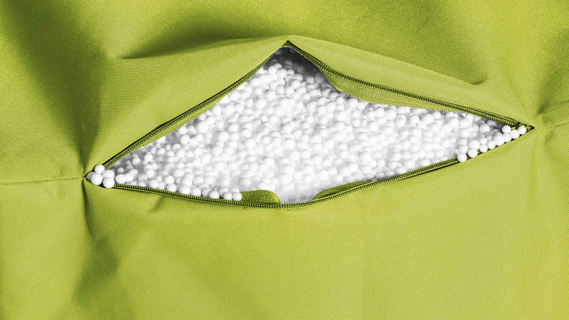 Der grüne Sitzsack-Hocker mit anthrazitfarbenen Seiten leistet Ihnen in jedem Wohnraum und auch als Terrassenmöbel oder Balkonmöbel gute Dienste.