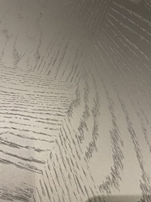 Platte: Eiche furniert Mosaik 24 mm, E10 schwarz matt lackiert