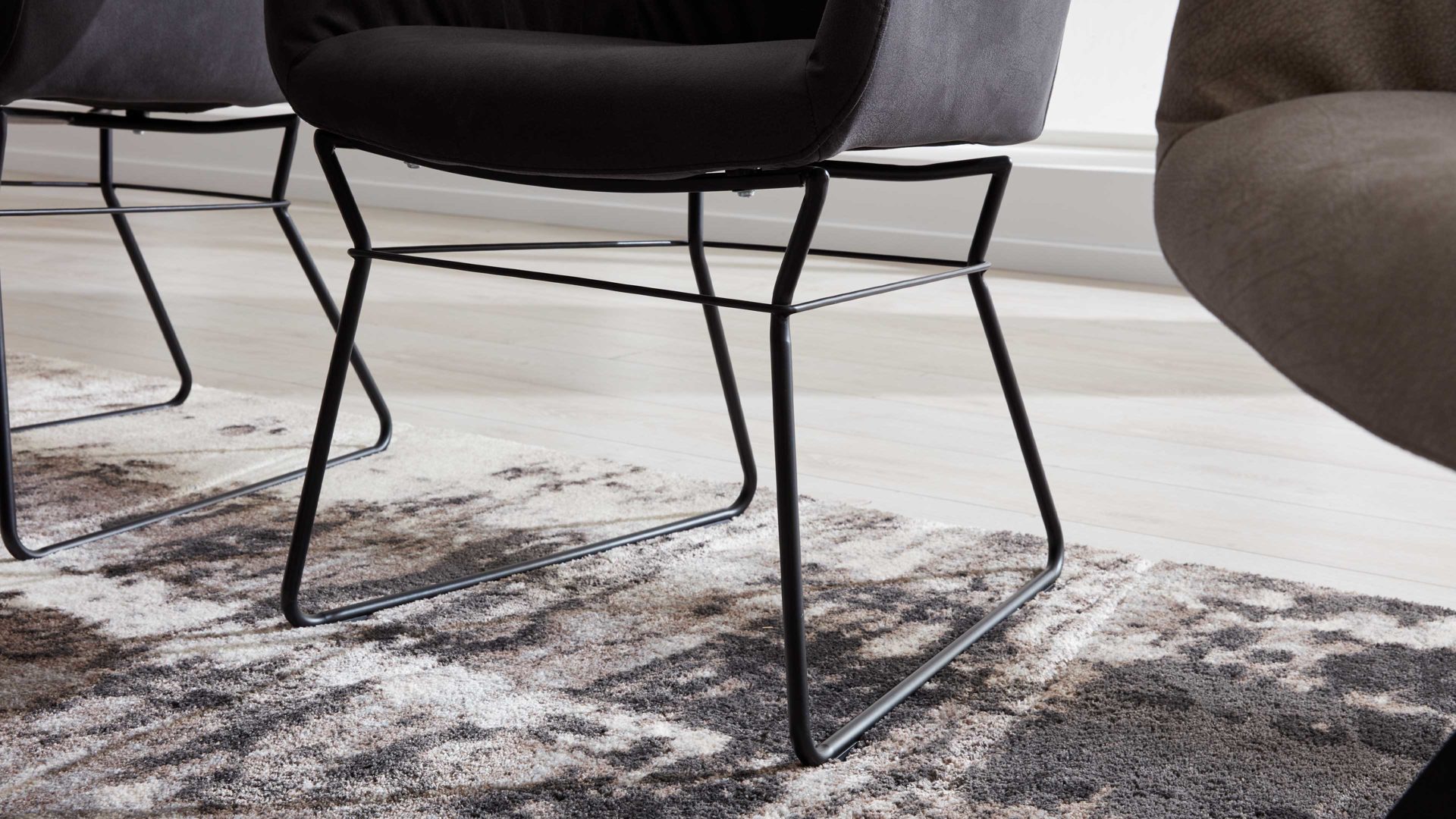 Gestell: Kufe, Eisen schwarz mit Drahtbinde