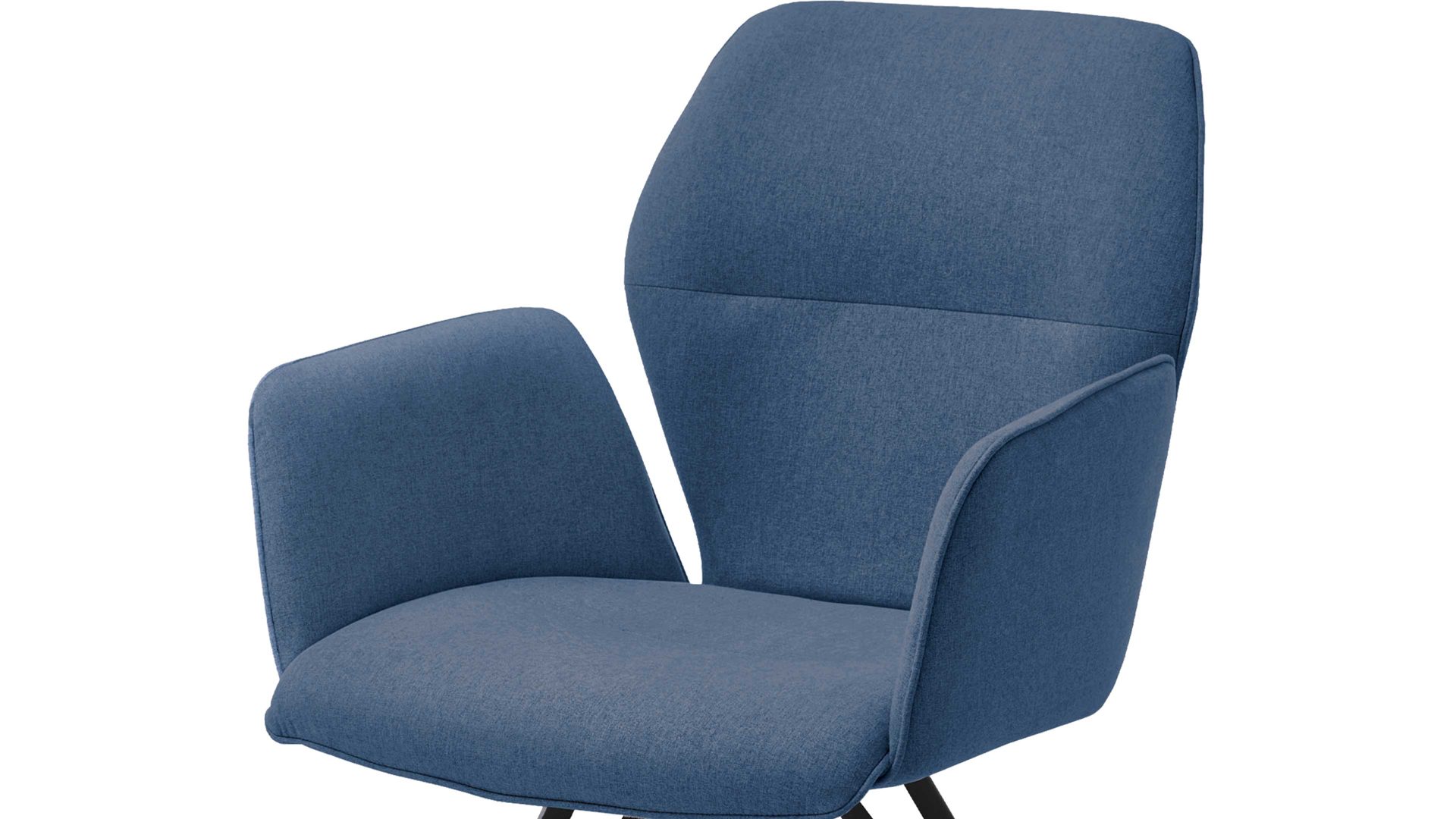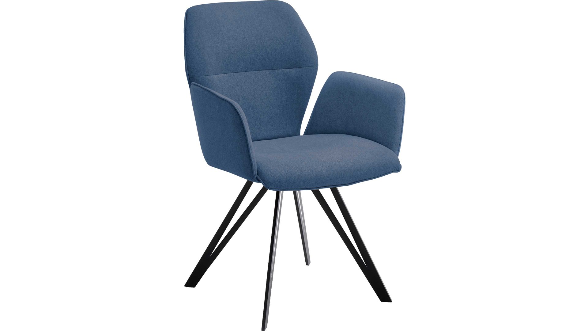 Der Armlehnstuhl Merlot präsentiert sich modern, kreativ und stilvoll designt. Er kombiniert einen blauen Webstoffbezug mit einem schwarz pulverbeschichteten Vierfuß-Flachstahlgestell. Letzteres sorgt für eine stabile Basis sowie für puristisch-elegantes Flair im Esszimmer. Dazu trägt auch der tiefe Farbton des hochwertigen, angenehm weichen Stoffbezugs bei. Überdies unterstreicht die spezielle Formensprache des Gestells die originelle Ausstrahlung des Vierfußstuhls.