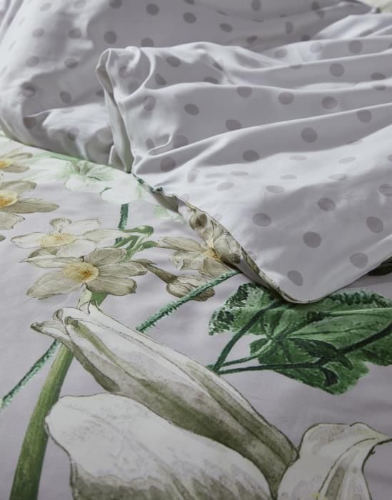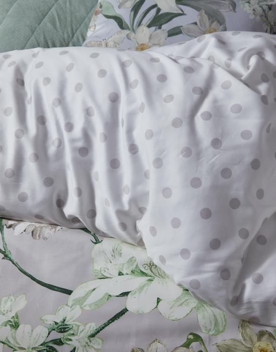 Farbe: cover grey | 100% Baumwolle Satin | trocknergeeignet | waschbar bis 60 Grad | Maße Bettbezug ca. 135 x 200 cm (BxL) | Maße Kissenbezug ca. 80 x 80 cm (BxL) | weich, glatt, atmungsaktiv und leicht glänzend | mit Reißverschluss | Vorderseite geblümt | Rückseite gepunktet
