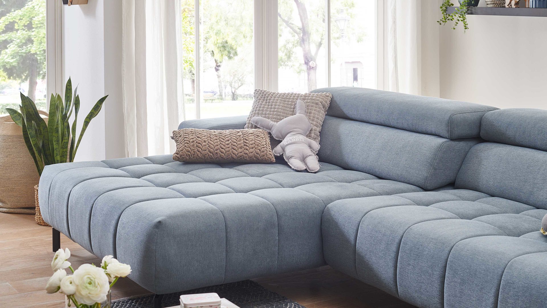 Durch leichtes Anheben und Vorziehen des Rückenpolsters gestalten Sie eine weitere Sitztiefe.