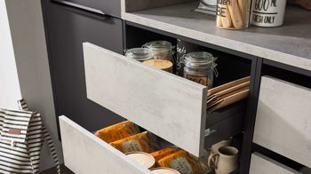 Interliving Küche Serie 3107 – stilvolle Vorratsraumlösung in Schwarz und Betonoptik für Ordnung und Struktur Moderner ...