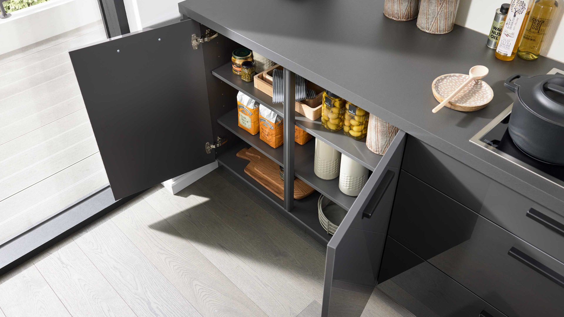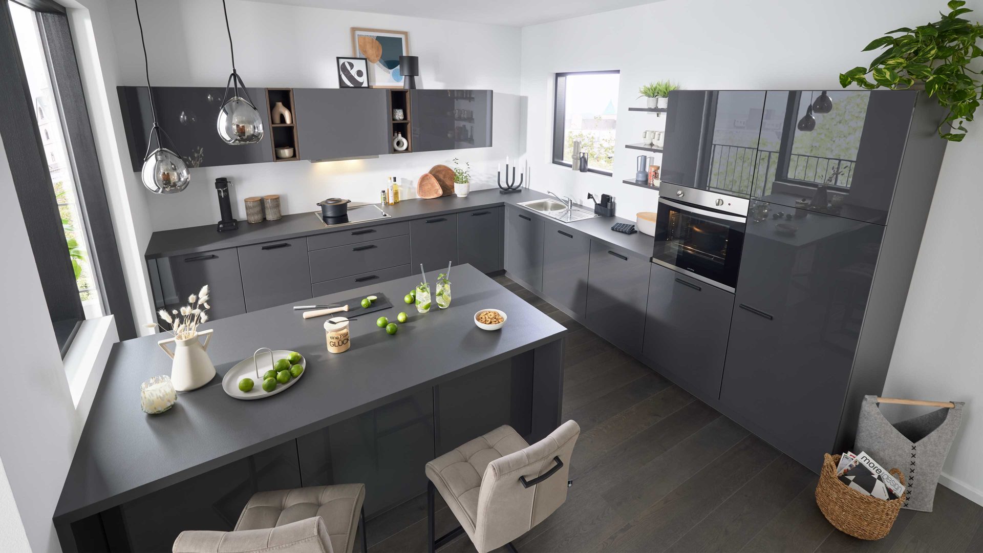 Interliving Küche Serie 3115 – elegante Hochglanzküche in Graphit   Stilvolles Design mit moderner Ausstrahlung Die Interliving ...