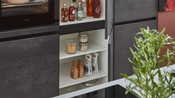 Hochschrankzeile mit zwei Backöfen, Einbaukühlschrank und viel Stauraum