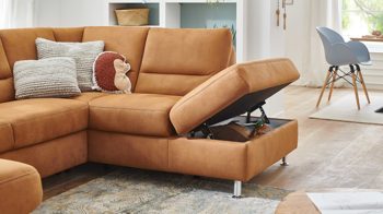 Indem Sie den Sitz nach vorne ausziehen, erweitern Sie die standardmäßige Sitzfläche um ca. 140 x 122 cm (BxL). Der Federholzrahmen, die bequeme Polsterung und die serienmäßig mit Nesselstoff oder gegen Aufpreis original bezogene Liegefläche sorgen für guten Liege- und Schlafkomfort. Als besonders praktisch erweist sich die Bettfunktion, wenn Gäste bei Ihnen übernachten.