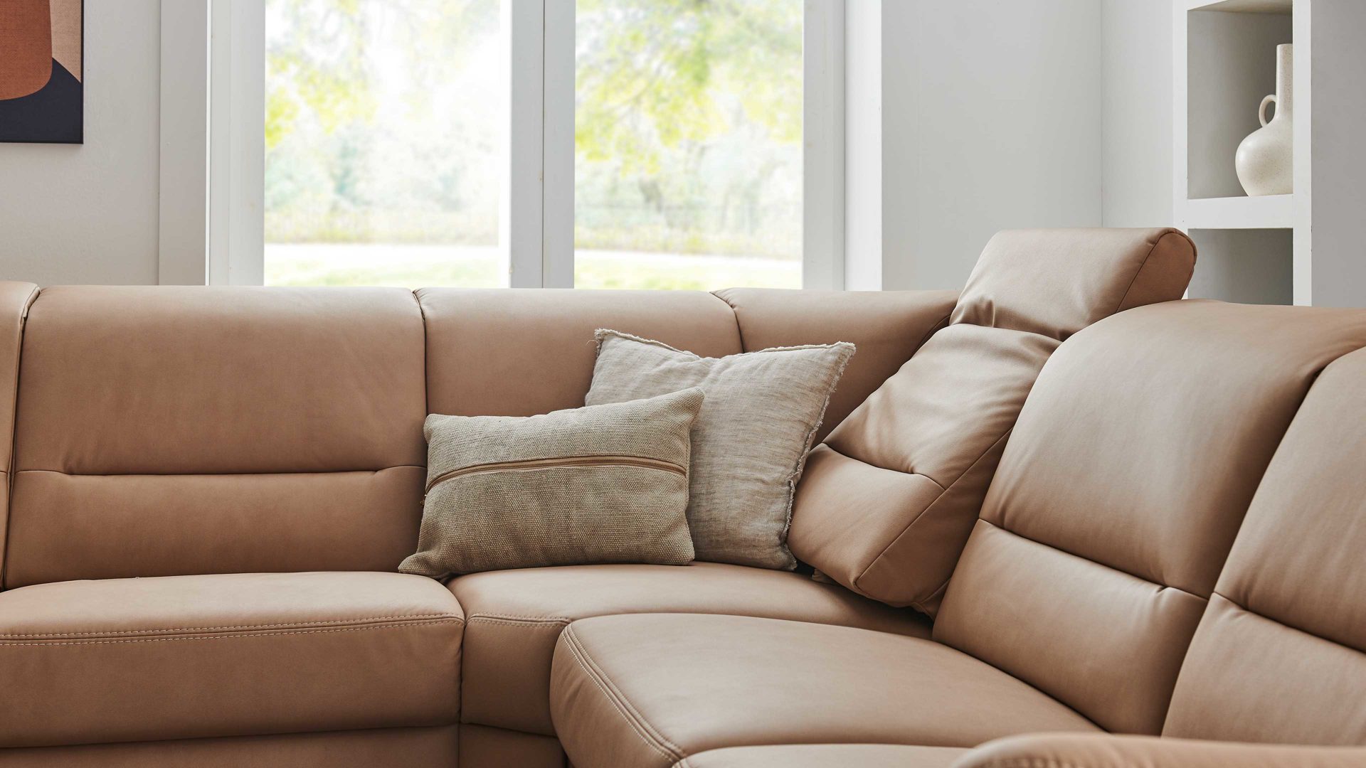 Indem Sie mit Ihrer Hand kurz unter das Rückenpolster greifen und die Rückenlehne zuerst leicht nach oben und im Anschluss nach vorne ziehen, verändert sich der Neigungswinkel der Lehne, sodass Sie sich beim Lesen, Fernsehen oder reinen Entspannen auf der Couch in eine besonders bequeme Position begeben können. Auf diese Weise verschafft die manuelle Relaxfunktion Ihrem Körper und Geist eine Extraportion Erholung.