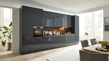 Interliving Küche Serie 3114 – moderne Hochglanzküche in Graphit mit AEG-Einbaugeräten   Stilvolles Design mit edlen Akzenten Die ...
