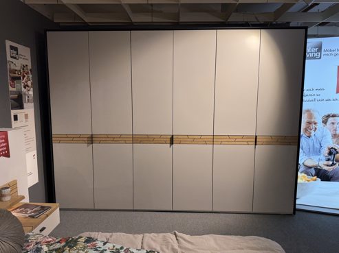 - Kleiderschrank 6-türig, Mittelriegel mit Blockstreifenfurnier, B/H/T ca. 302 x 223 x 62 cm
