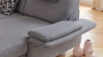 Die Funktions-Armlehne lässt sich mehrfach mittels Rasterbeschlag bis hin zur Liegeposition verstellen - im Handumdrehen ist das Polstermöbel bereit für eine kleine Auszeit.