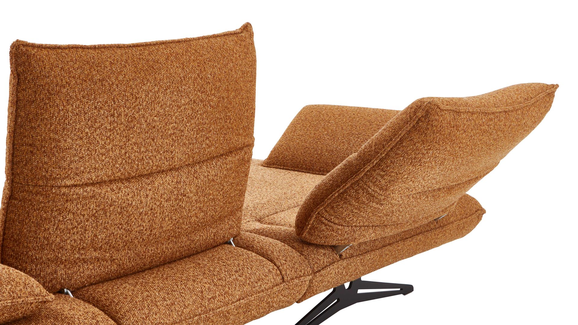 Besonders hervorzuheben sind die Funktionsrücken und die Sitztiefenverstellung der Eckcouch. Durch die zweifach verstellbare Rückenlehne mit eingearbeiteten Metallgelenken kann die Sitztiefe um bis ca.