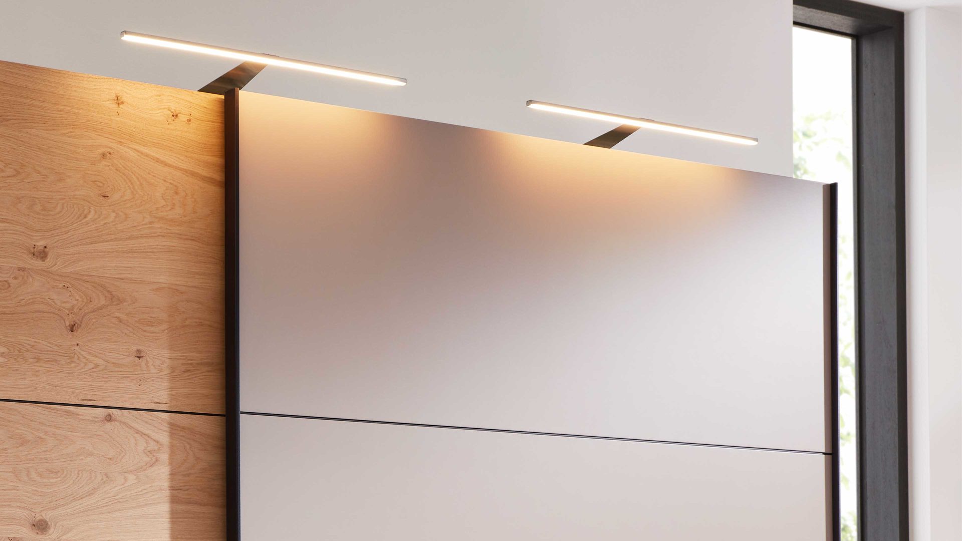 Die Aufsatzstrahler 90052 aus der Interliving Schlafzimmer Serie 1024 dienen als akzentuierende Kleiderschrankbeleuchtung und