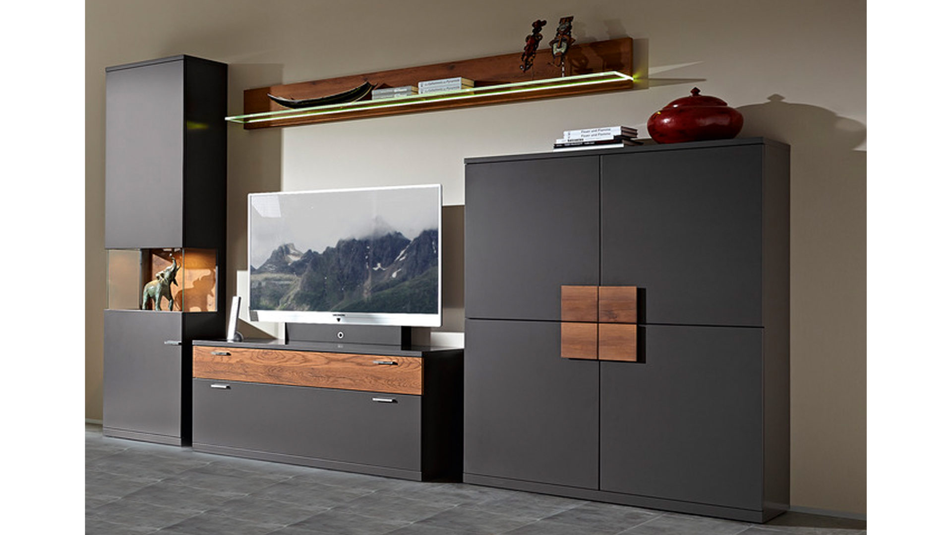 Grau & Eiche Artisan - 4-teilig - Breite ca. 350 cm