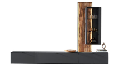 graphitfarbene Lackoberflächen & geölte Eiche – Breite ca. 345 cm