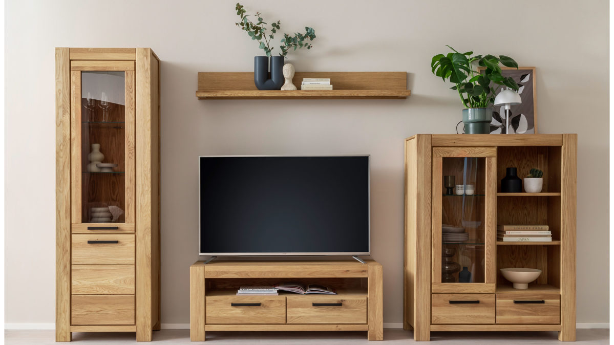 | Maße Einzelartikel: | Vitrine: Maße ca. 65 x 199 x 45 cm (BxHxT) Wandboard: Maße ca. 155 x 20 x 21 cm (BxHxT) TV-Board: Maße ca. 130 x 52 x 50 cm (BxHxT) Highboard: Maße ca. 109 x 140 x 45 cm (BxHxT)