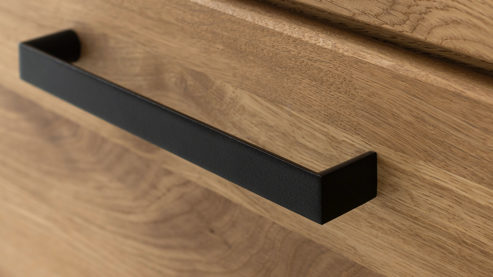 Klarglaseinsätze und matt schwarze Metallbügelgriffe
