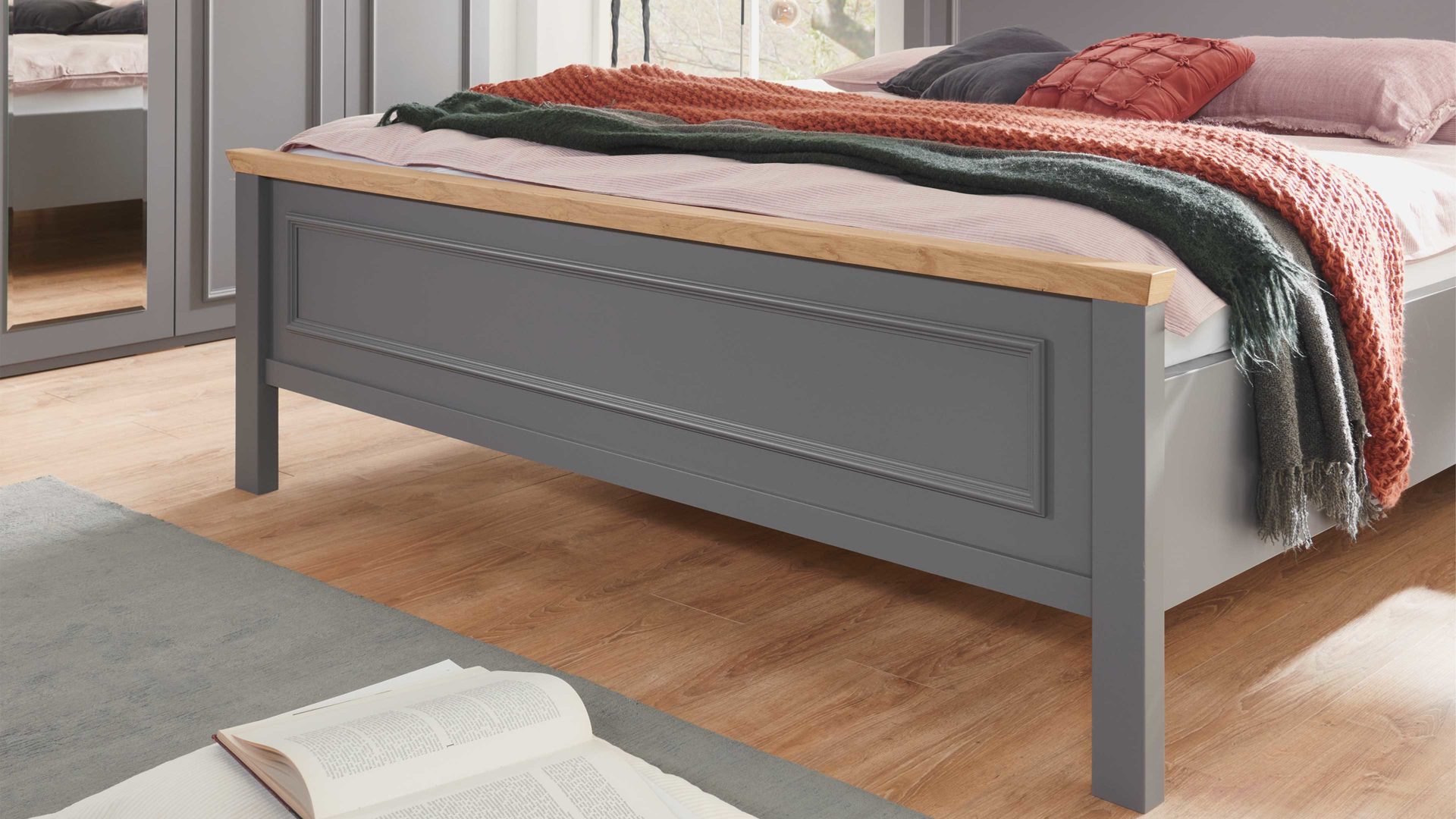 Die C.DISSELKAMP Schlafzimmerserie Charleston im Landhaus-Look bietet Ihnen gemütliches und zeitloses Ambiente für Ihr Schlafzimmer. Die grauen Lackoberflächen in Kombination mit den Wildeiche Absetzungen verleihen dem Raum eine warme und gemütliche Atmosphäre.