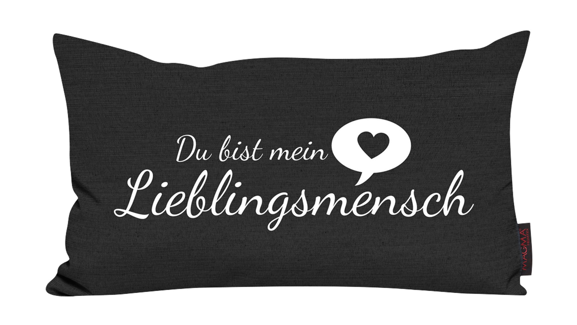 Mit einer liebevollen Botschaft schafft dieses MAGMA Zierkissen ein heimeliges Ambiente in Ihrem Wohnzimmer. Auf der Couch empfängt Sie das Kissen mit dem Spruch Du bist mein Lieblingsmensch sowie einer Sprechblase mit einem kleinen Herz darin. Dabei kommen der Schriftzug sowie die Sprechblase in Weiß auf dem altrosafarbenen Bezug außerordentlich gut zur Geltung. Das Dekokissen ist ca. 30 x 50 cm (BxL) groß und damit der perfekte Begleiter an kuscheligen Fernsehabenden oder für gemütliche Lesestunden.
