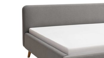 Mit den eichefarbenen Holzfüßen und dem hellgrauen Flachgewebebezug bringt das Polsterbettgestell Mattis modernes Flair in Ihr ...