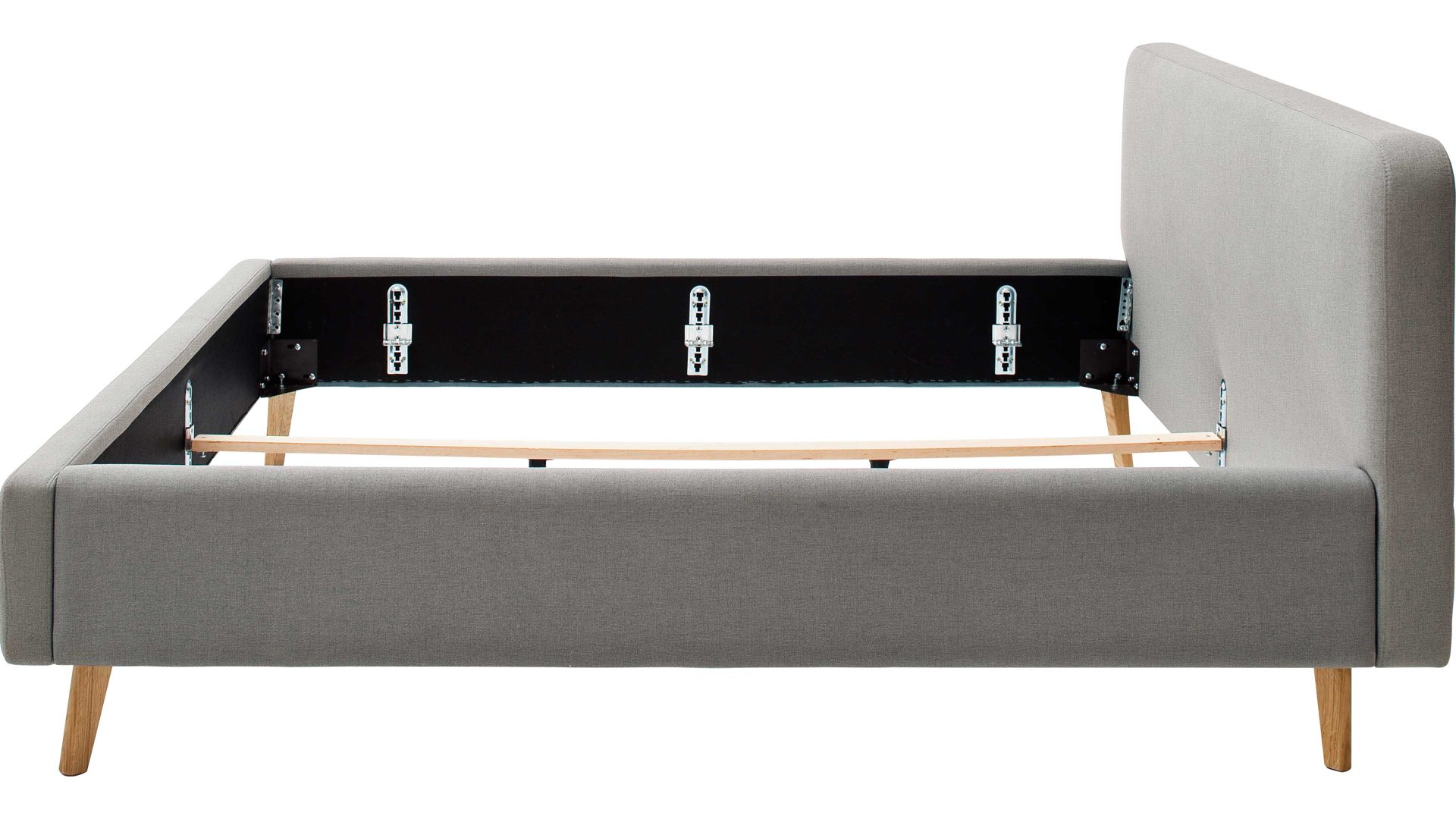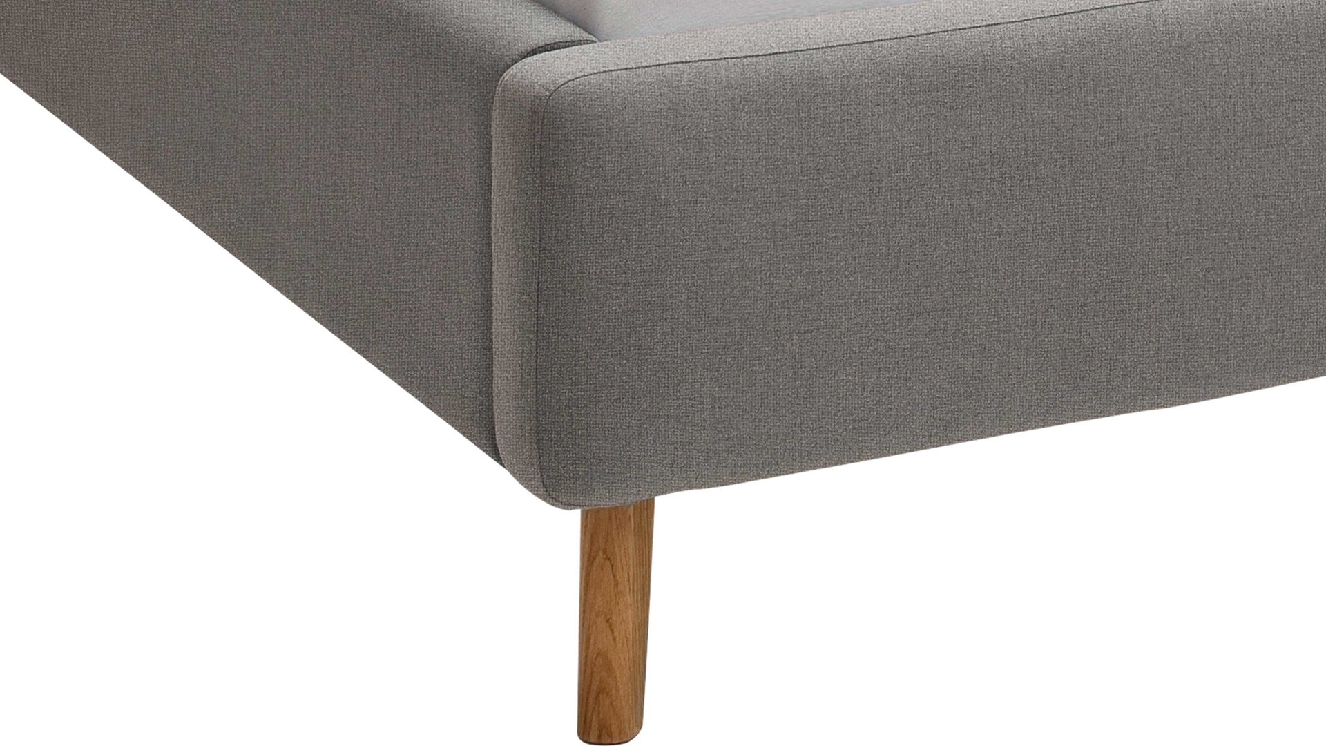 Mit den eichefarbenen Holzfüßen und dem hellgrauen Flachgewebebezug bringt das Polsterbettgestell Mattis modernes Flair in Ihr ...