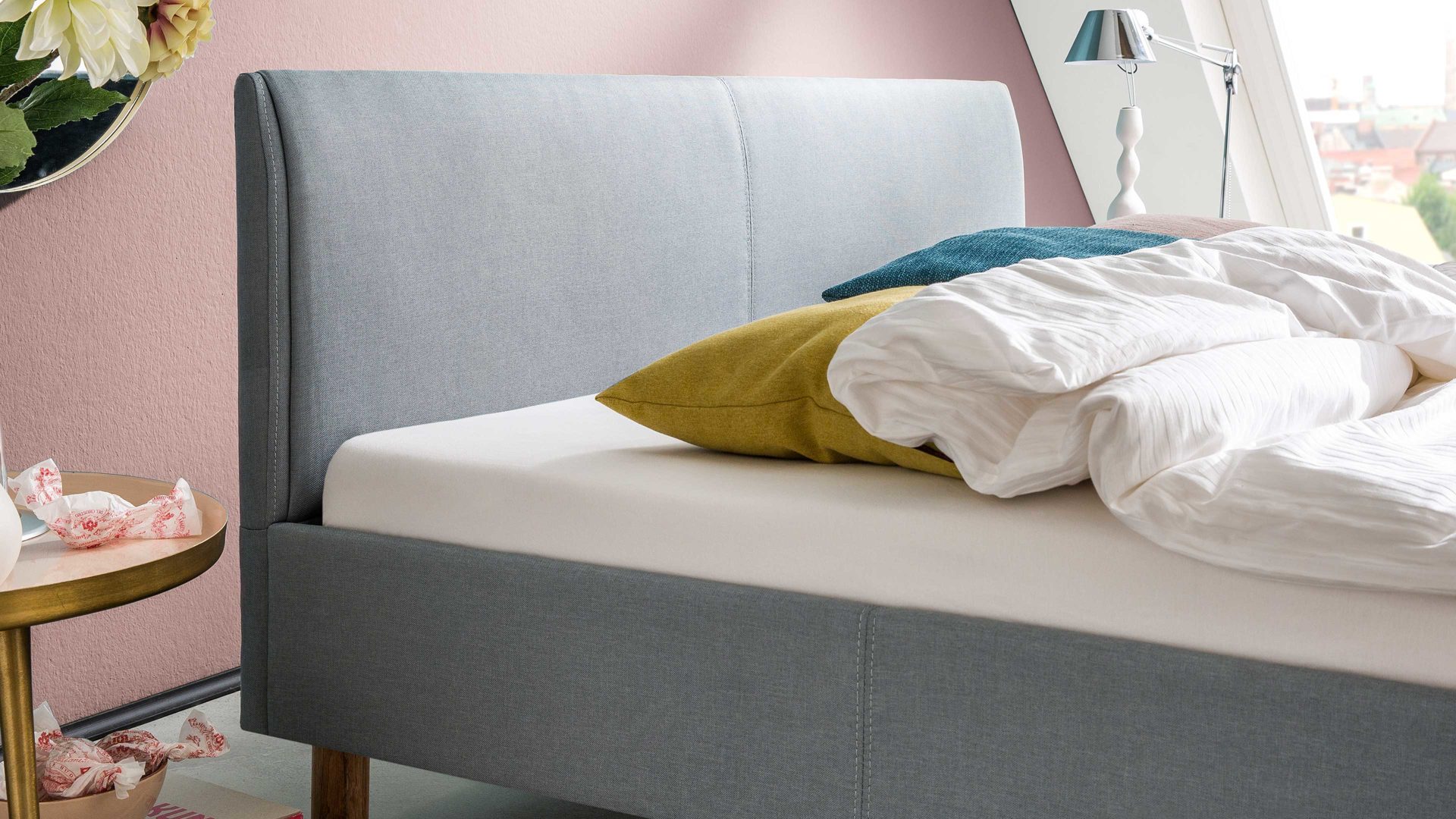 eisblaues Flachgewebe Aspen 84 & Holzfüße - Liegefläche ca. 140 x 200 cm