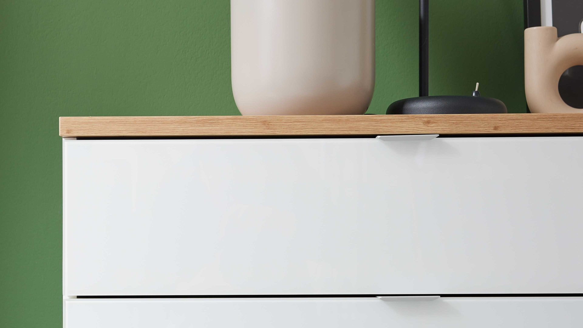 Schubladenkommode aus der Interliving Kleiderschrank Serie 1208 – stilvolle Kombination aus Alpinweiß und Artisan-Eiche
