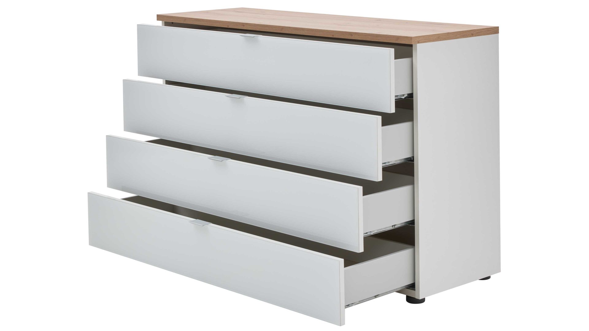 Schubladenkommode aus der Interliving Kleiderschrank Serie 1208 – stilvolle Kombination aus Alpinweiß und Artisan-Eiche