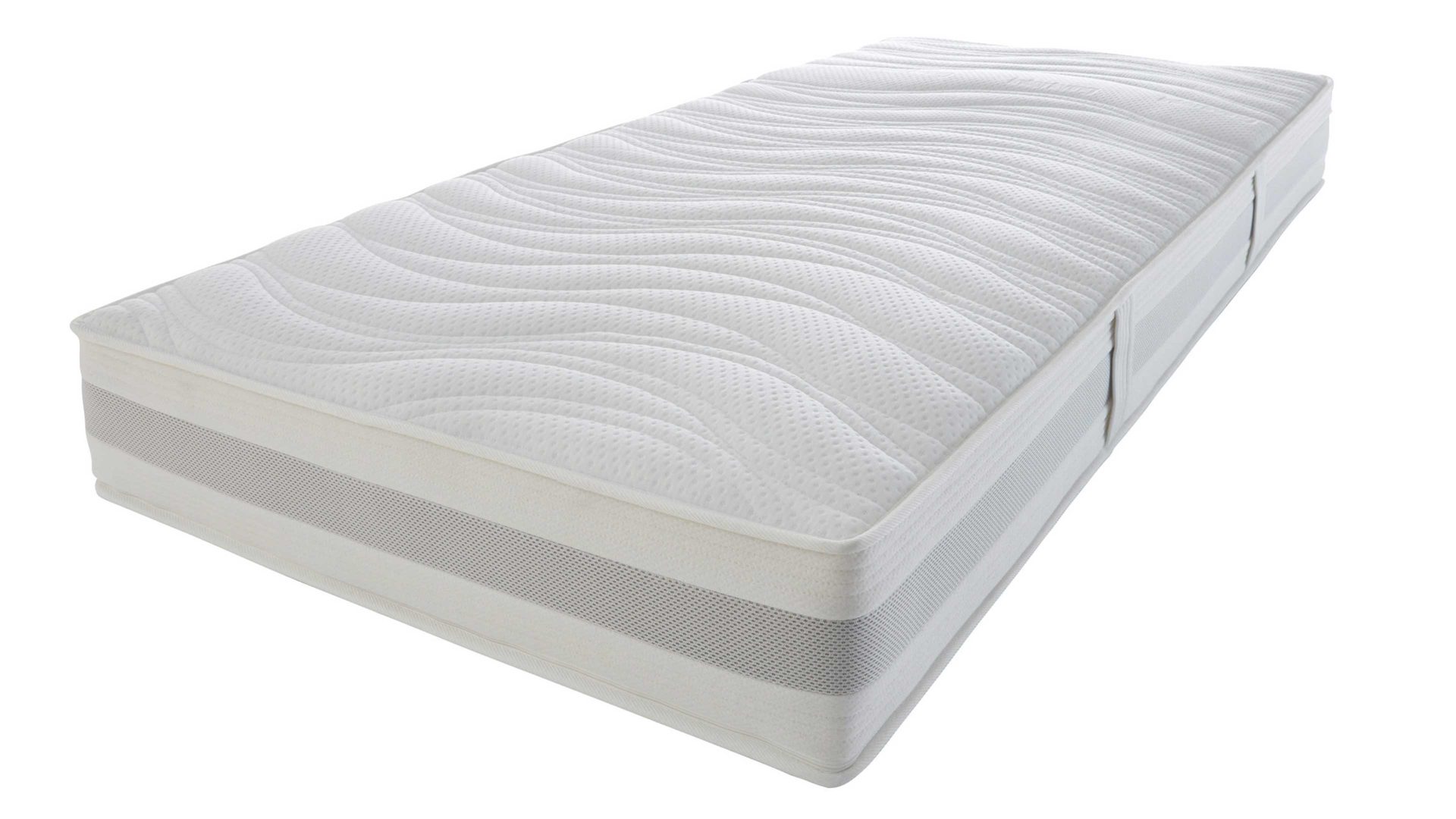 Erlebe erholsamen Schlaf mit der Interliving Matratze Medikontur 1913, die durch ihre hochwertige Verarbeitung und perfekt aufeinander abgestimmten Materialien überzeugt. Mit einem 7-Zonen-AQUAPUR®-Taschenfederkern, einer zusätzlichen Viskoplatte im Noppenprofil und einer integrierten Sitzkantenstabilisierung bietet sie optimalen Liegekomfort und ergonomische Unterstützung – ideal bei einem Körpergewicht bis ca. 80 kg in der Festigkeit H2. Die Liegefläche beträgt ca. 90 x 200 cm (BxL), bei einer Höhe von ca. 22 cm.
