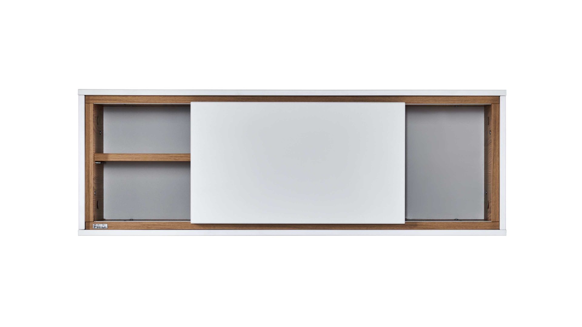 Das PAIDI Lieven Wandregal vereint Modernität und Funktionalität auf harmonische Weise. Die kreideweiße Oberfläche des Regals bildet einen perfekten Kontrast zur Eiche Montana Nachbildung und verleiht Ihrem Babyzimmer eine helle und freundliche Atmosphäre. Das Regal ist mit einer Schiebetür versehen, die das Innere des Regals vor Staub und Schmutz schützt. Eine Mittelwand sorgt für zusätzliche Stabilität und ermöglicht eine flexible Aufteilung des Regals. Der eichefarbene Einlegeboden kann je nach Bedarf rechts oder links montiert werden und bietet ausreichend Platz für die Pflegeprodukte Ihres Babys.