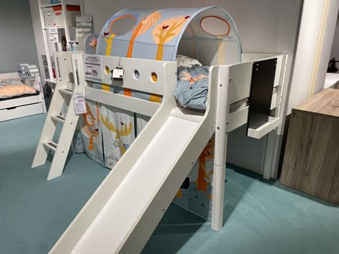 Halbhohes Bett mit Schrägleiter & Rutsche aus Programm White