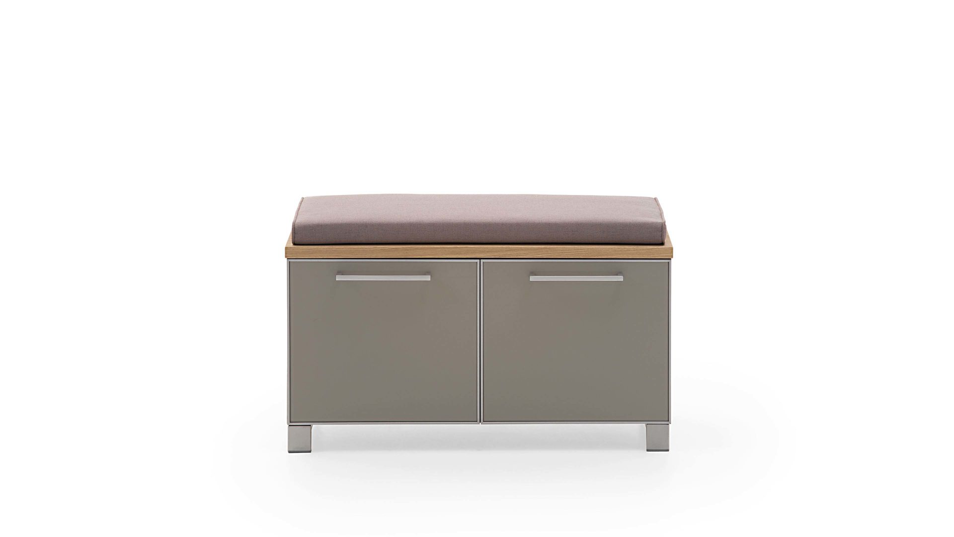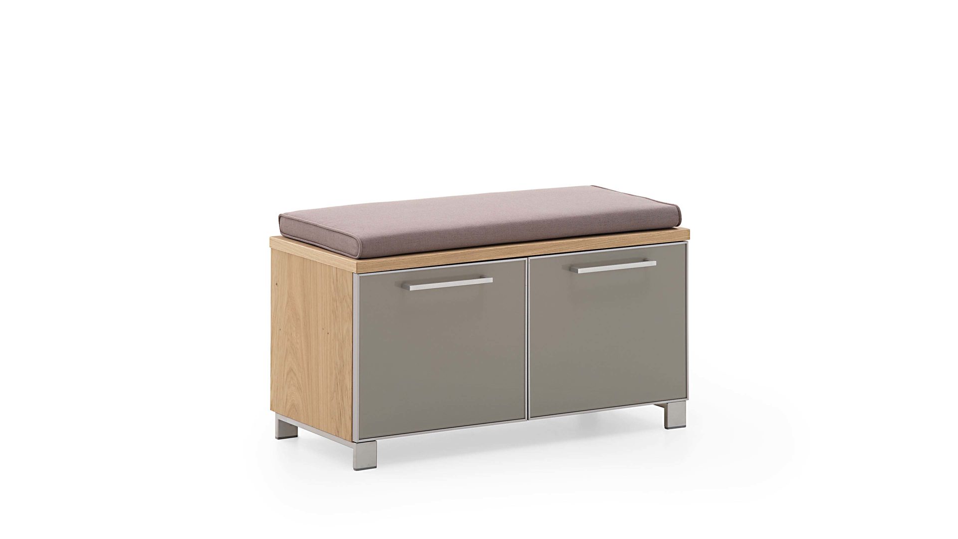 Das Sitzkissen Santina von VOSS MÖBEL mit taupefarbenem Bezug macht aus der modernen Garderobenbank Santina im Nu eine gemütliche Sitzbank für Ihren Eingangsbereich.