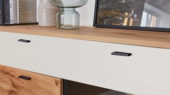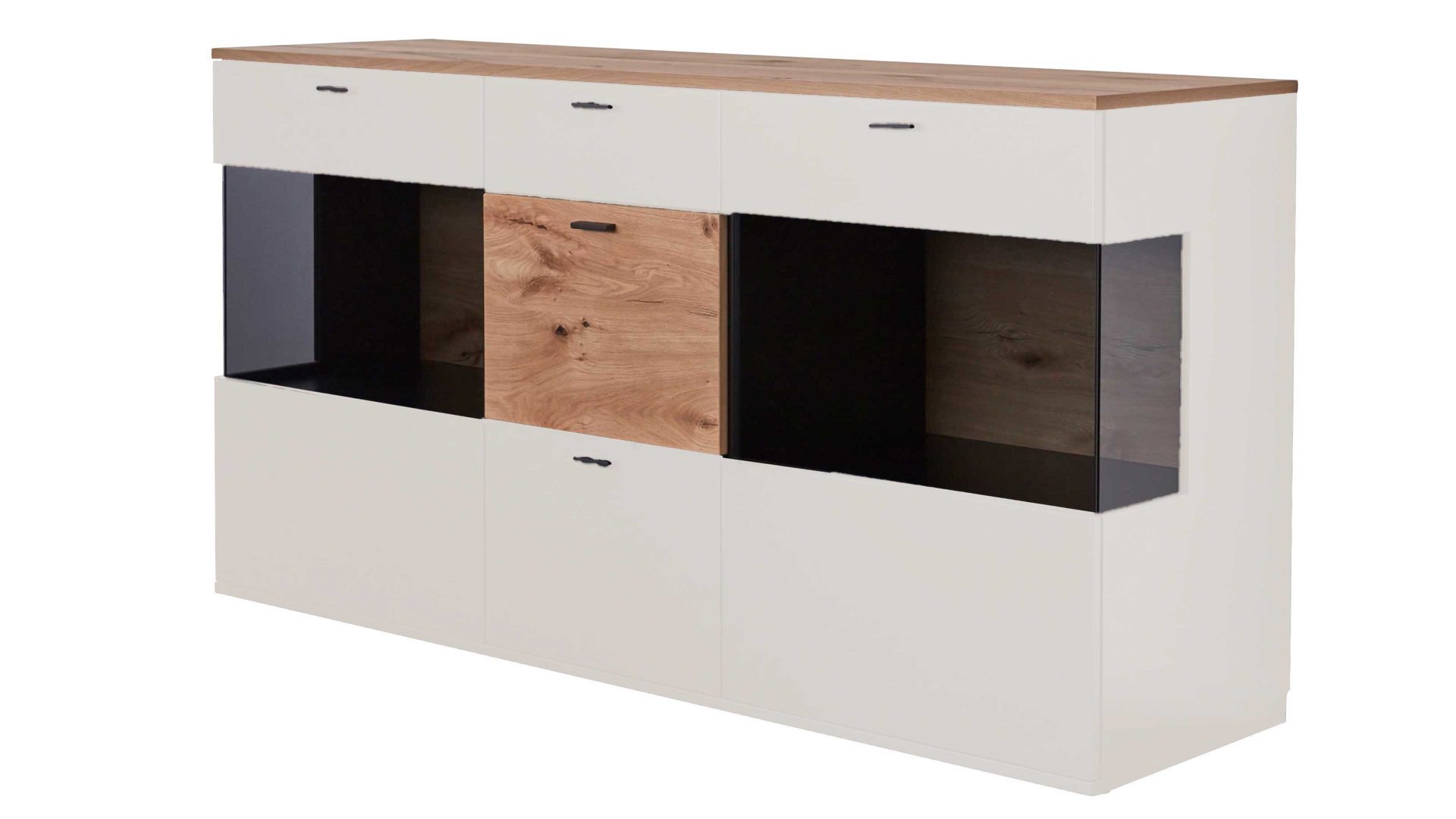 Sideboard Interliving-2104 Ausf. Lack weiß seidenmatt Akzent: Balkeneiche natur furniert Griff: anthrazit matt Vorzugskombination IL ...
