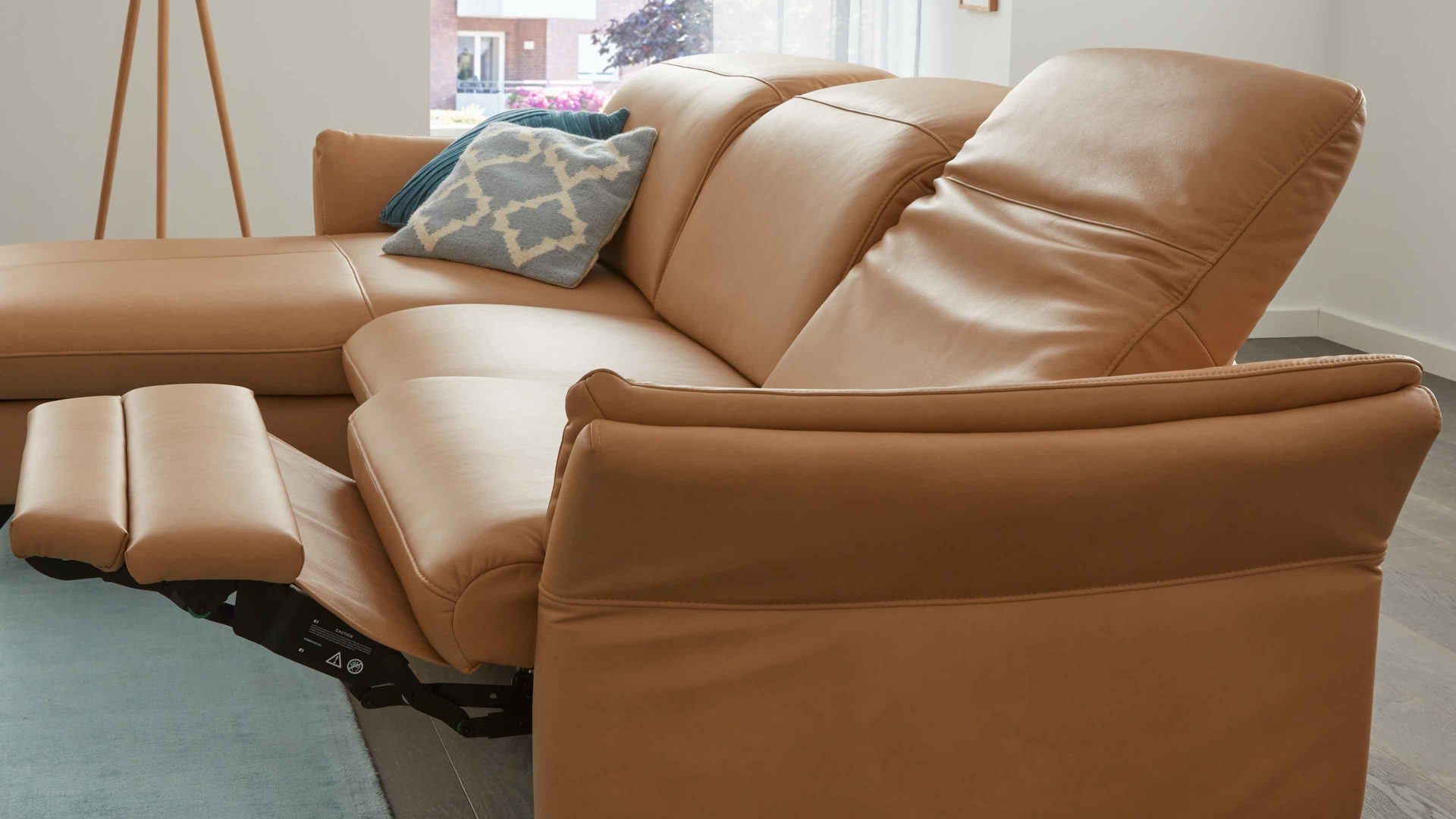 Für herausragenden Komfort sorgen neben der feinen Haptik des Leders die feste Federkernpolsterung auf einer stützenden Wellenunterfederung im Sitz und die mit Kaltschaum gepolsterten Rückenlehnen.
