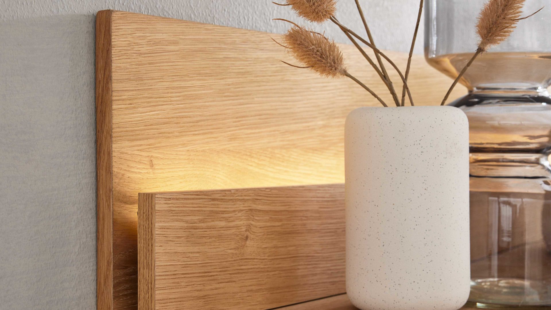Streifenbeleuchtung für Sideboard und Wandregal aus der Interliving Wohnzimmer Serie 2027 – stilvolle Rückwandbeleuchtung mit warmweißem LED-Licht