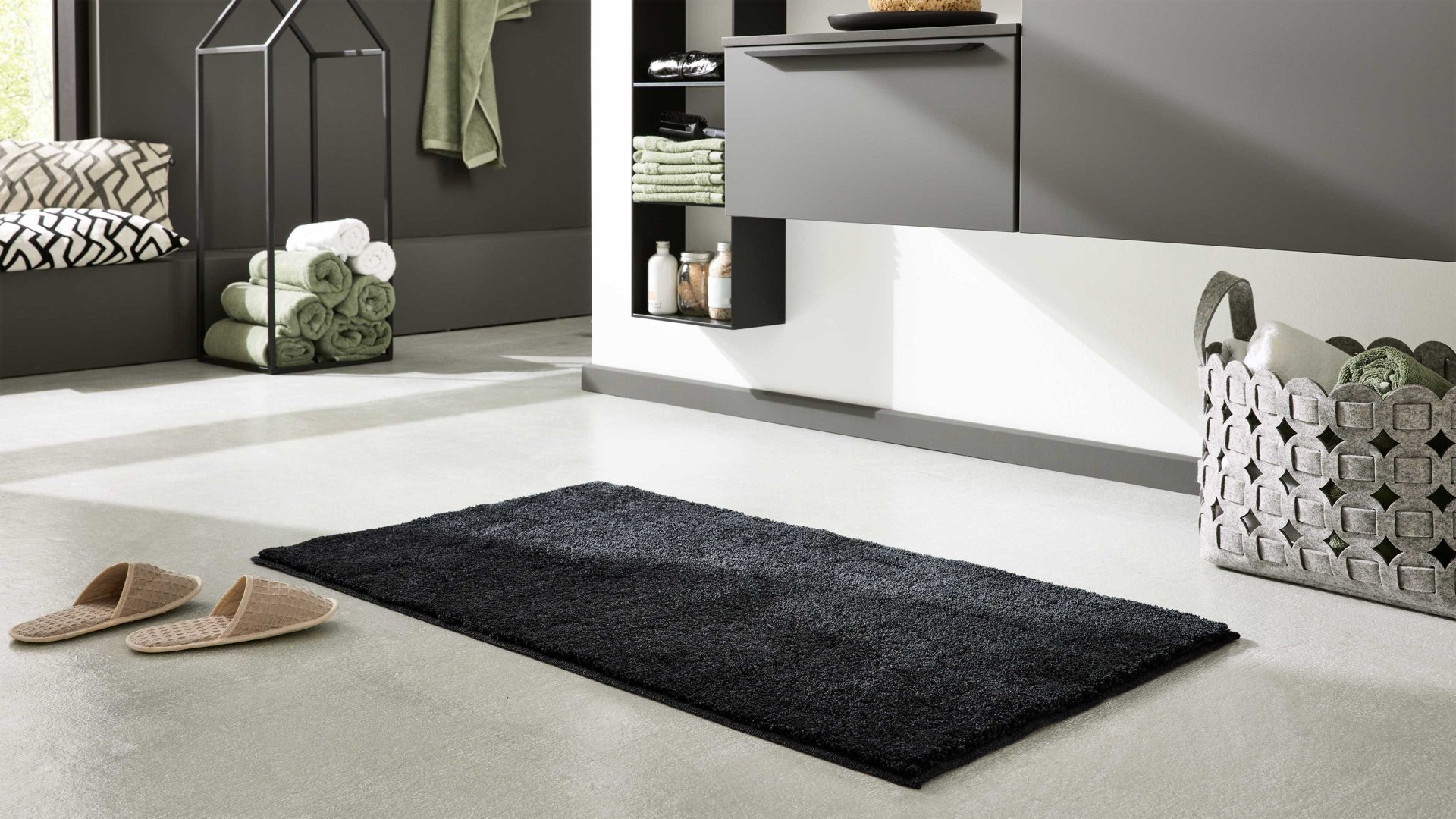 Hergestellt aus anthrazitfarbener Kunstfaser, strahlt der ca. 60 x 90 cm (BxL) große Duschvorleger moderne Eleganz mit einer noblen Note aus, die dem Badezimmer das gewisse Etwas verleiht.