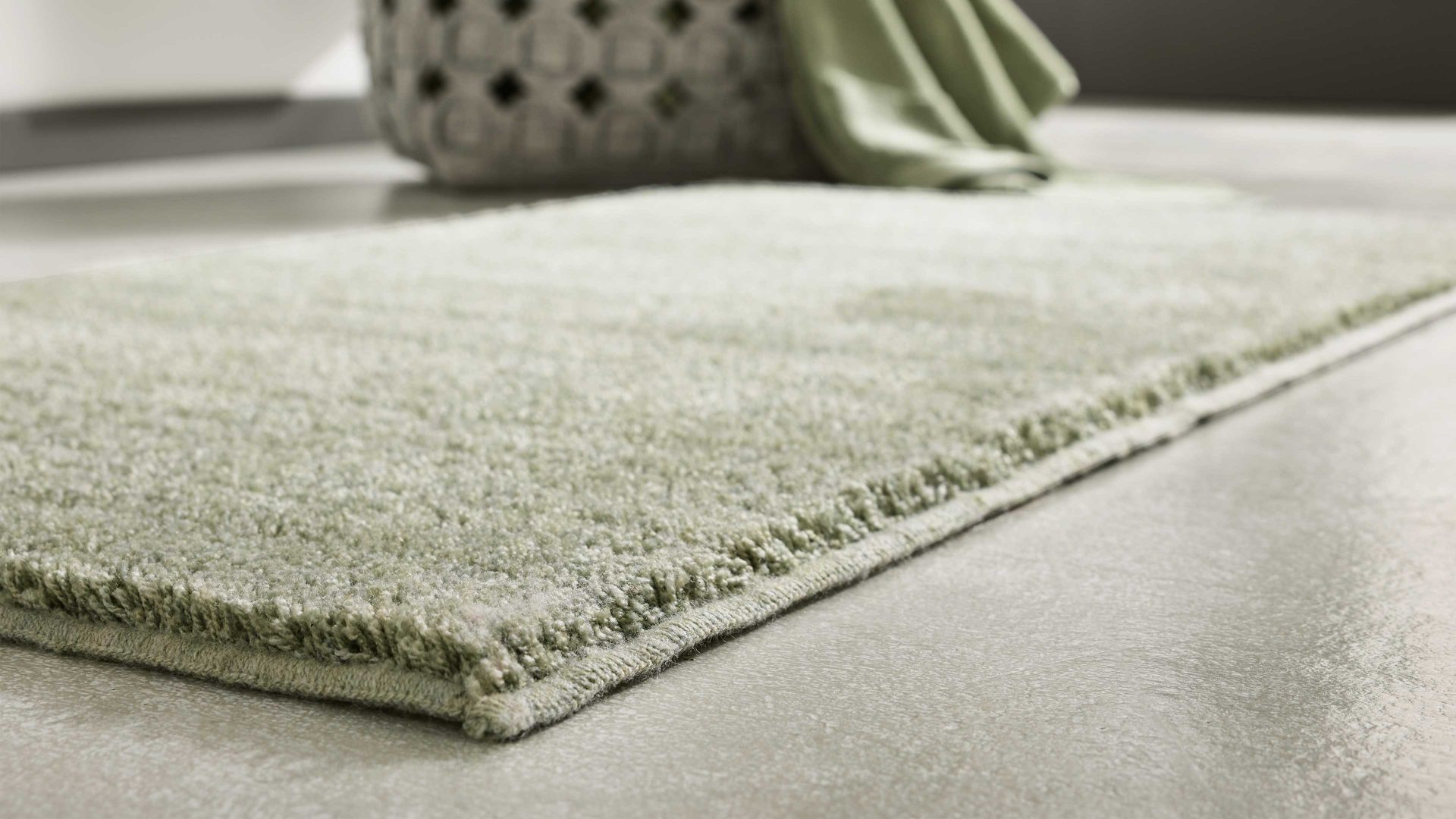 Hergestellt aus jadegrüner Kunstfaser, strahlt der ca. 65 x 115 cm (BxL) große Duschvorleger moderne Eleganz mit einer noblen Note aus, die dem Badezimmer das gewisse Etwas verleiht.