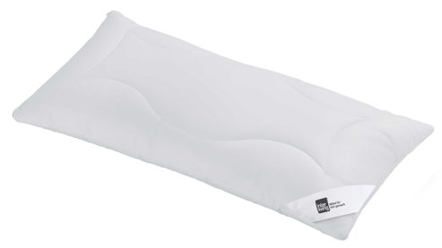 Der feine, weiße Bezug aus hochwertigem, gestepptem Edel-Batist Nm 100 (D) fühlt sich wunderbar glatt und weich an. Im Inneren steckt durchdachte Technologie: Die Füllung besteht außen aus superleichter Hollofil® Spring 3D-Markenfaser und im Kern aus hochbauschigem Faserflaum. Diese Kombination sorgt für ein elastisches, anschmiegsames Liegegefühl – mit optimaler Unterstützung für Kopf und Nacken.